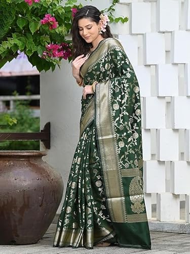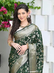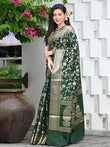 Bottle Green Banarasi Silk Saree with Golden Zari Weaving