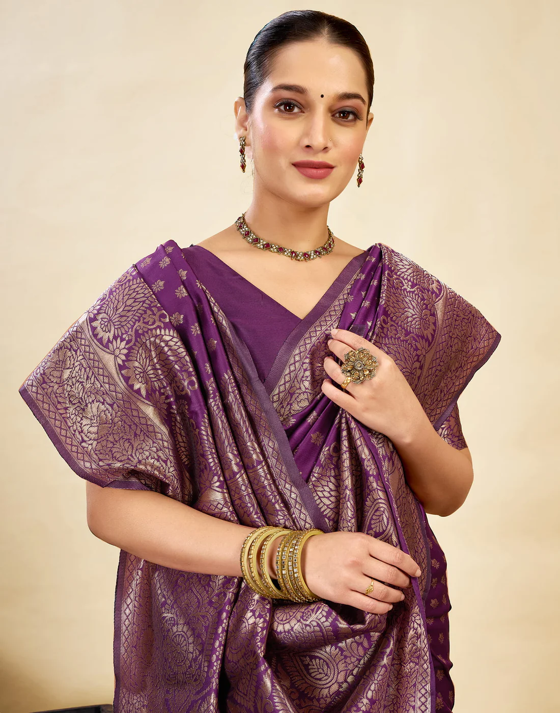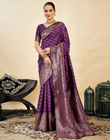Opulent Wine Banarasi Silk Saree with Golden Zari Weaving