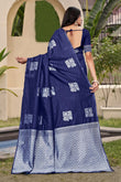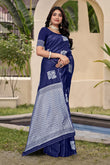 Chic Navy Blue Banarasi Silk Saree with Silver Zari Weaving
