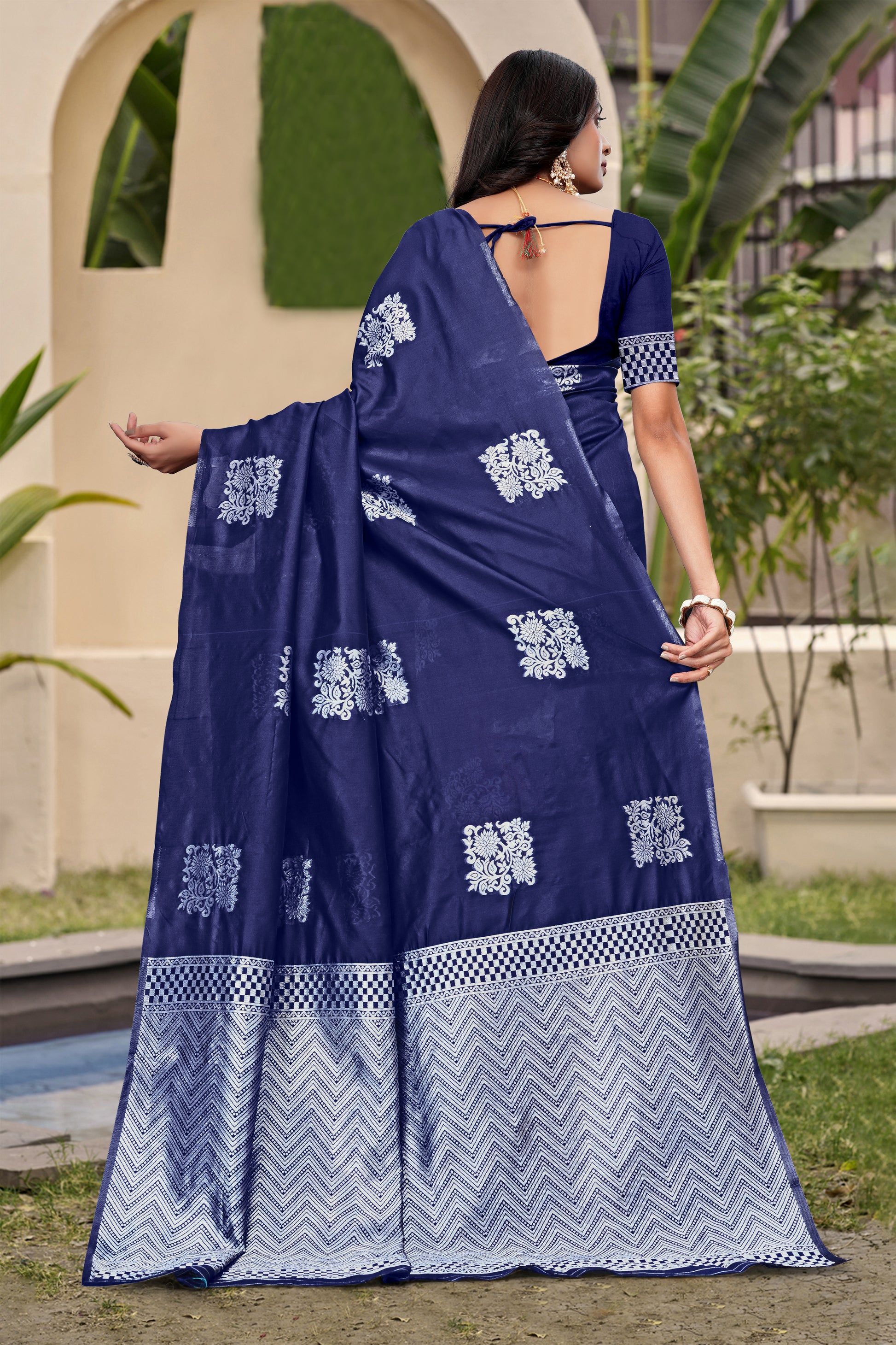 Color: Navy Blue with Silver Zari Work
