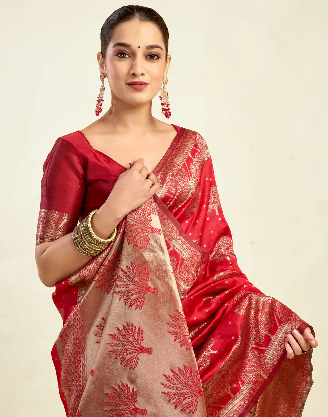 Classic Red Banarasi Silk Saree with Luxurious Golden Zari Weaving