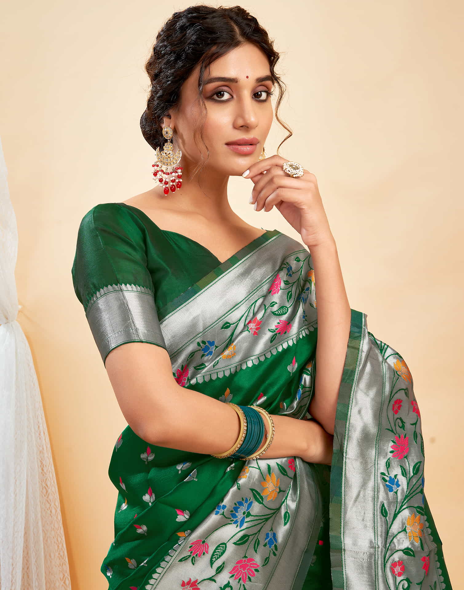 Color: Deep Bottle Green with Multi-Colored Zari & Thread Work