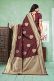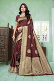 Elegant Maroon Banarasi Silk Saree with Rich Golden Zari Weaving