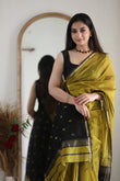Elegant Olive Green Handloom Saree with Black and Gold