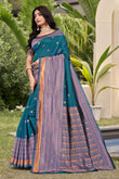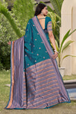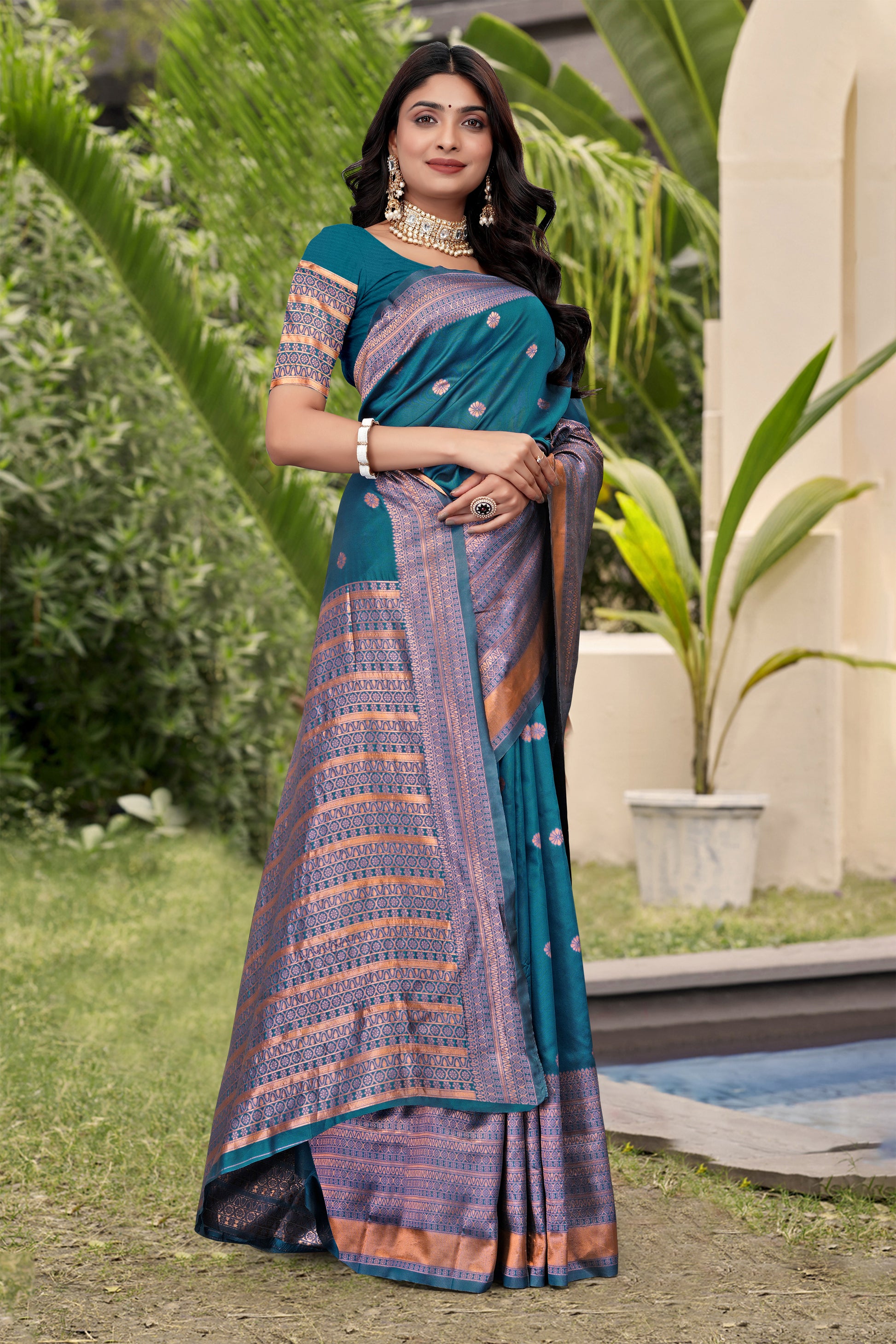 Elegant Teal Blue Banarasi Silk Saree with Copper Zari Weaving