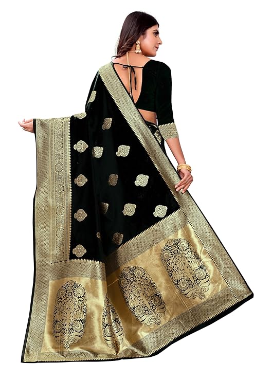 Luxurious Black Banarasi Silk Saree with Grand Golden Butta Motifs