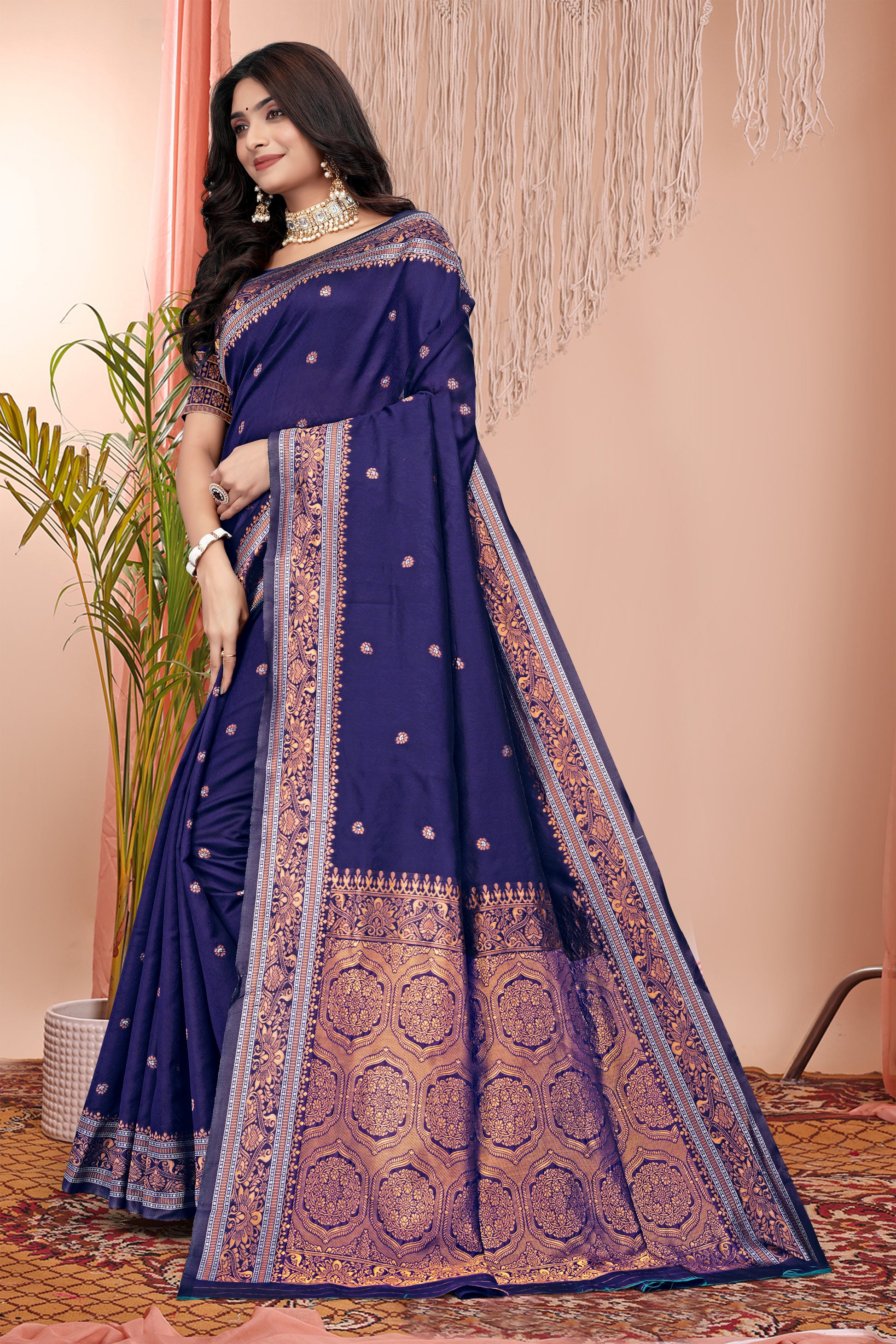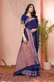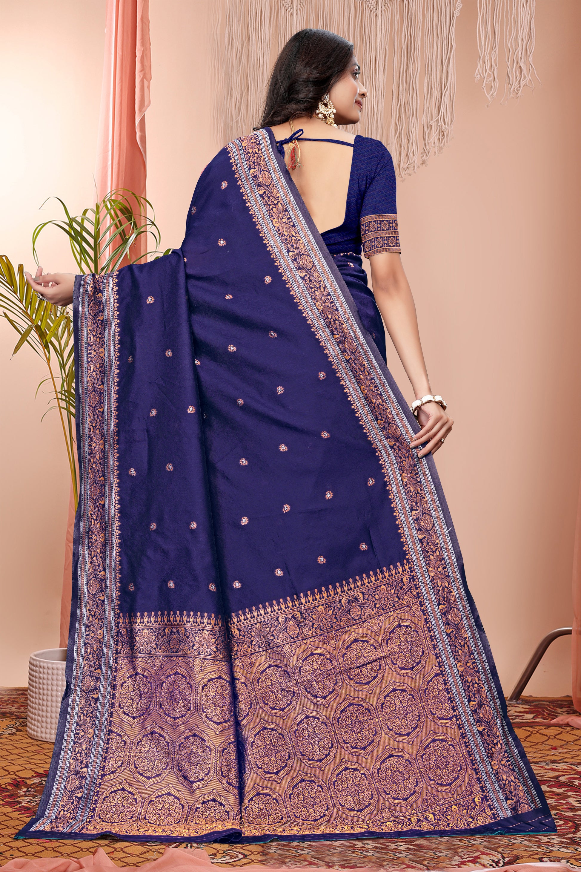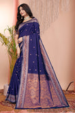 Majestic Indigo Blue Banarasi Silk Saree with Copper Zari