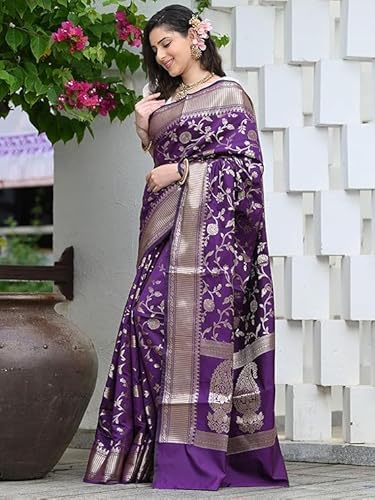 Majestic Purple Banarasi Silk Saree with Antique Zari