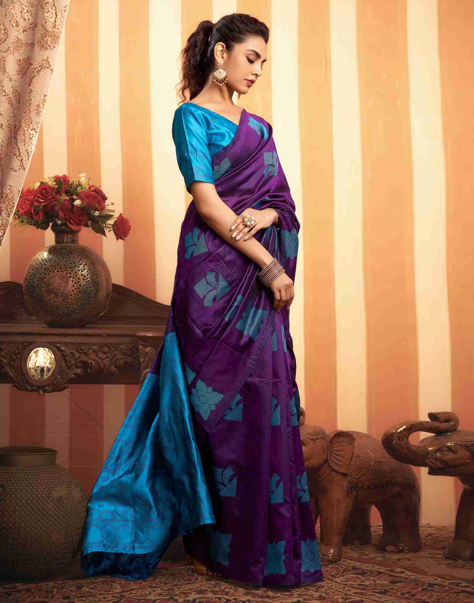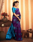Majestic Purple & Blue Banarasi Silk Saree with Woven Floral Motifs