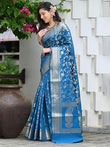Majestic Royal Blue Banarasi Silk Saree with Silver Zari