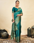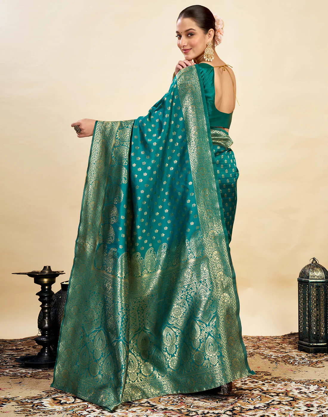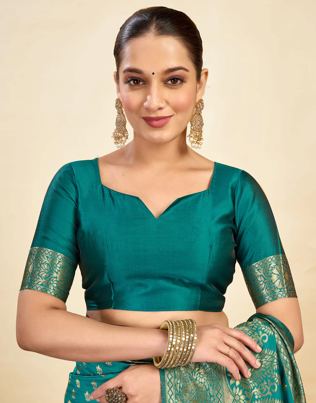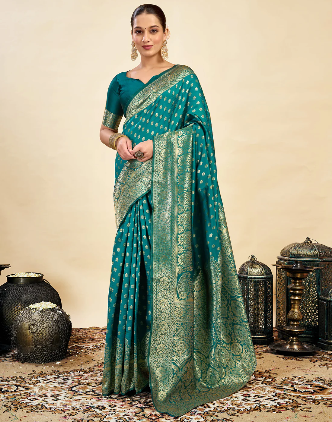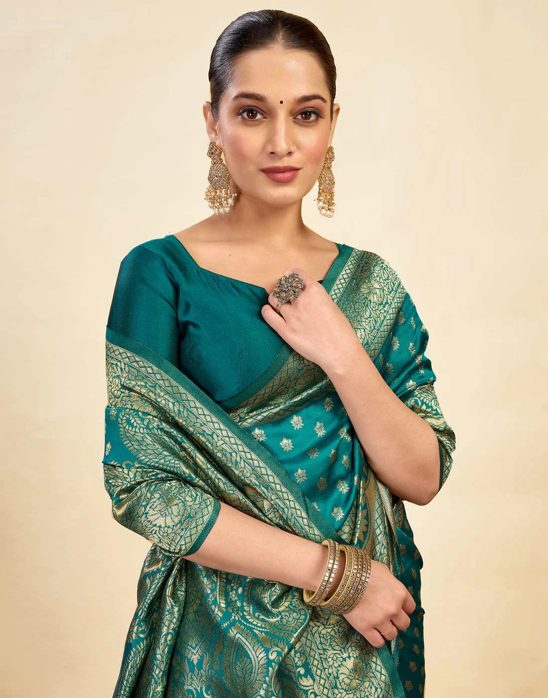 Majestic Teal Banarasi Silk Saree with Golden Zari Weaving