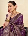 Opulent Wine Banarasi Silk Saree with Luxurious Golden Zari Weaving