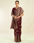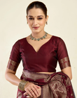 Blouse Piece: Included (Unstitched, matching wine with zari border)