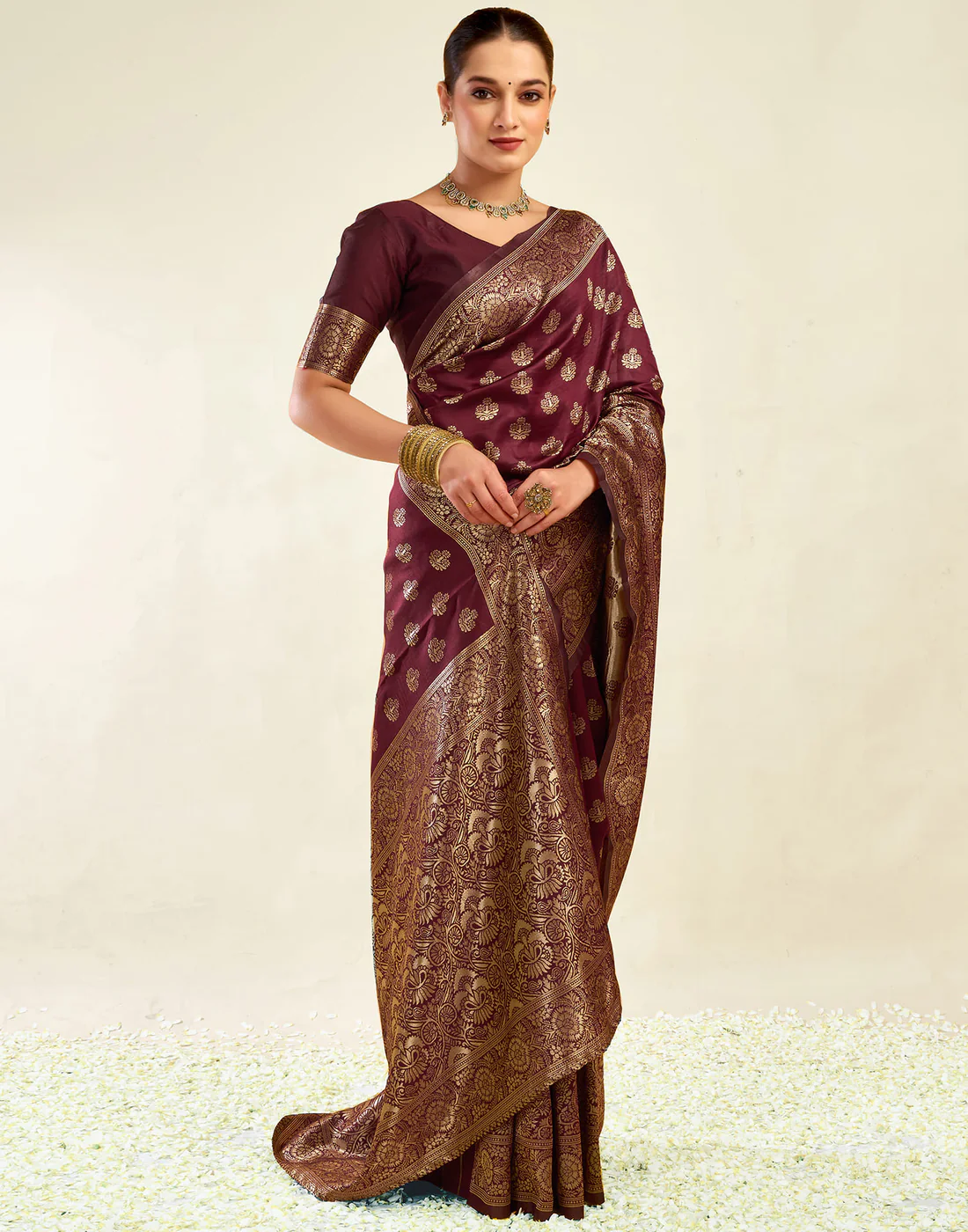 Regal Maroon Banarasi Silk Saree with Grand Golden Zari Weaving