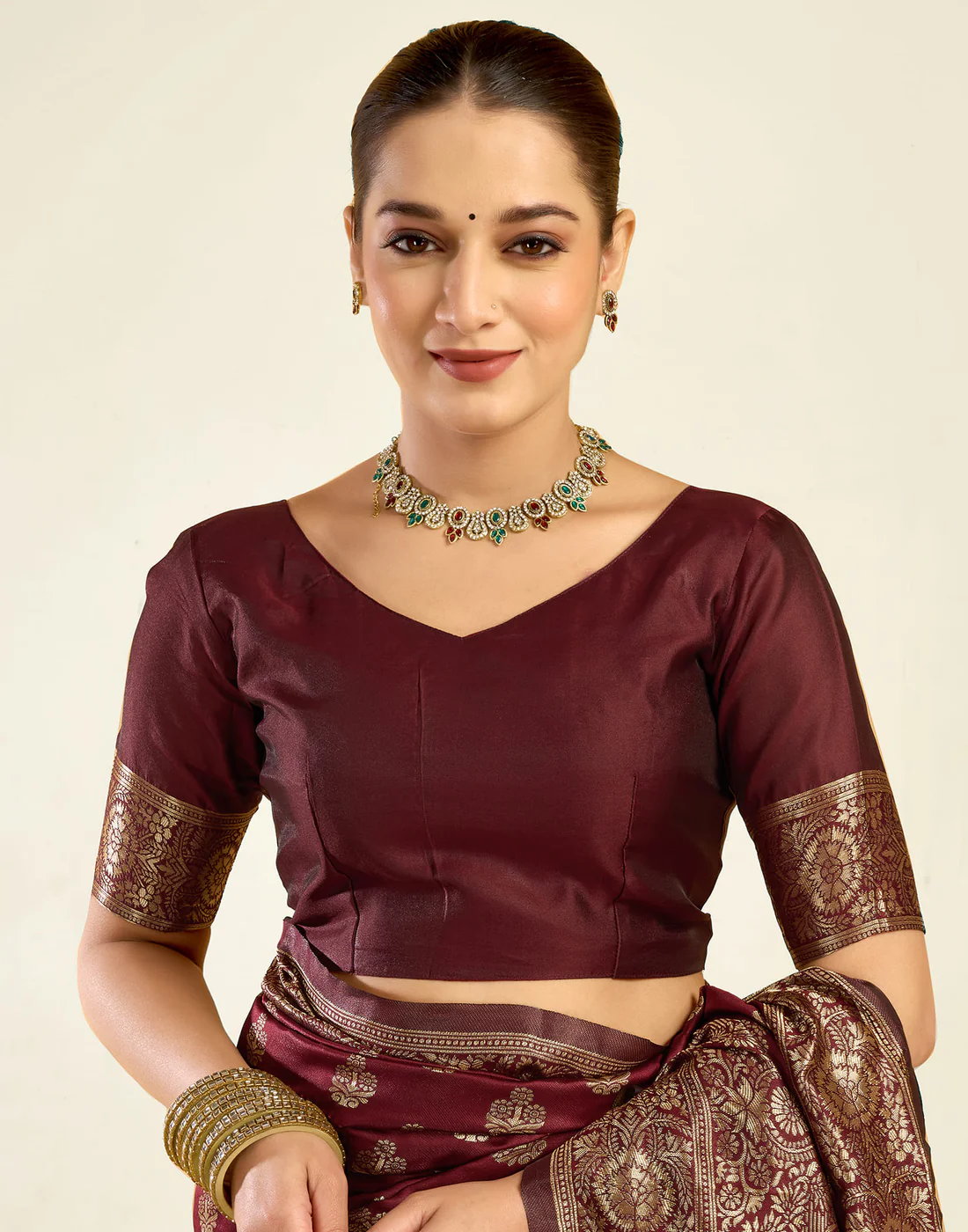 Blouse Piece: Included (Unstitched, matching maroon with zari border)