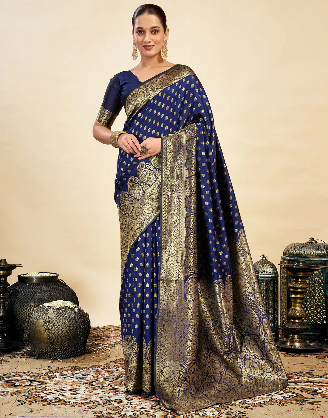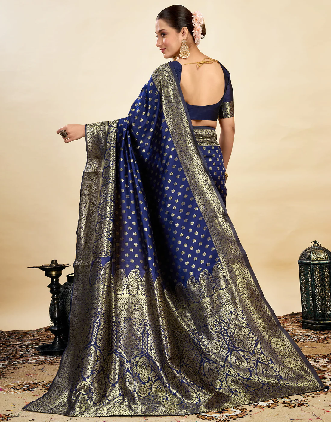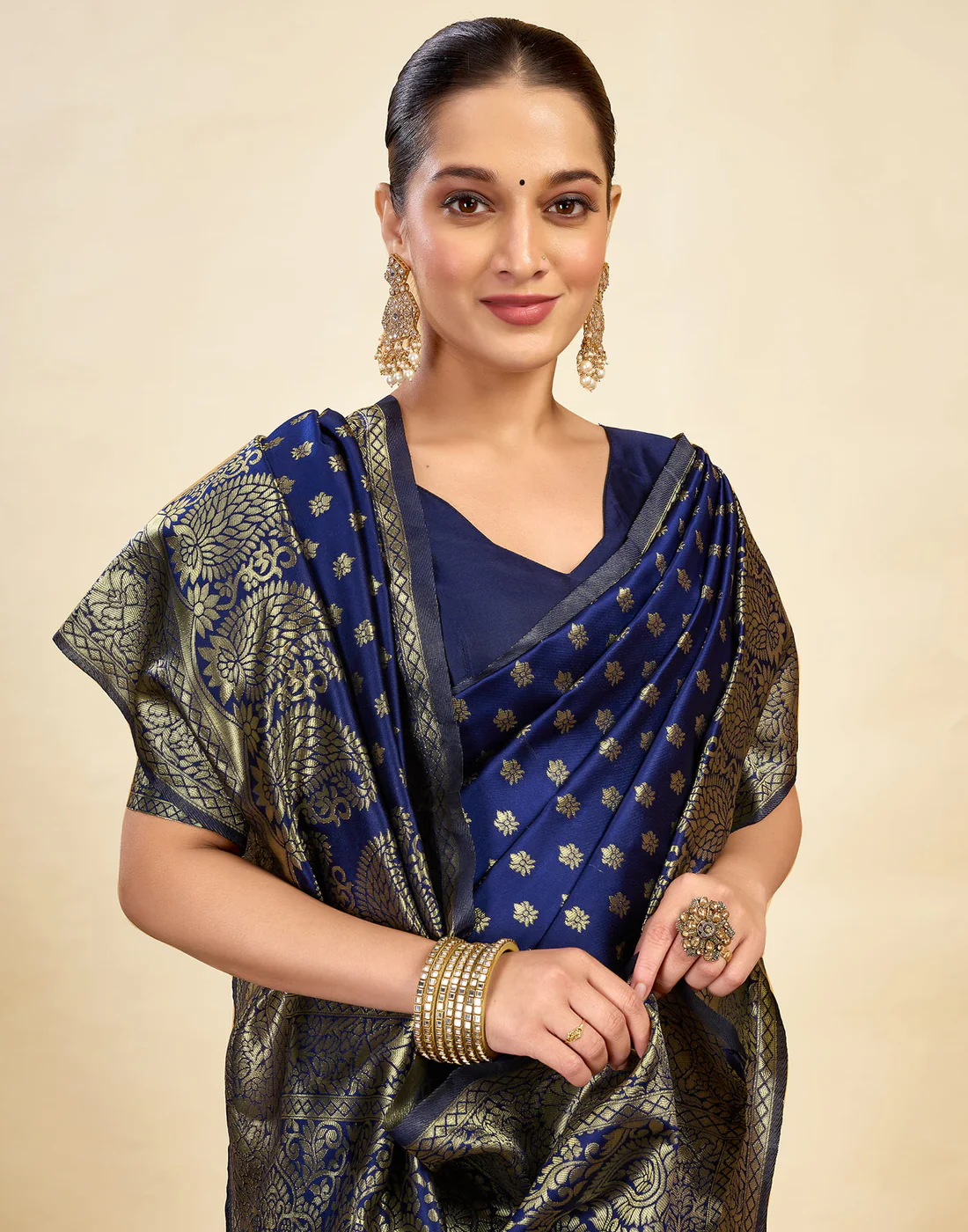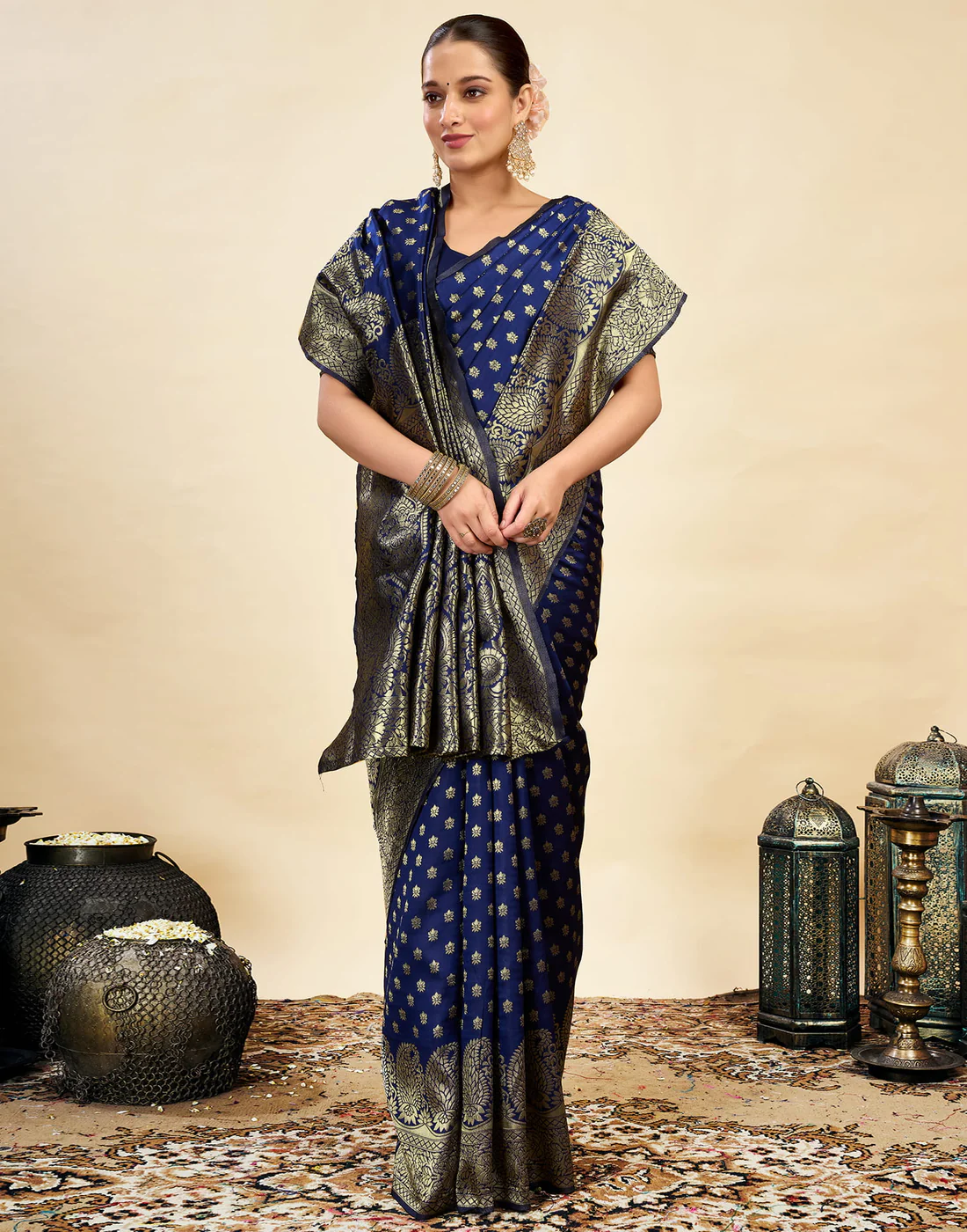 Regal Navy Blue Banarasi Silk Saree with Golden Zari Weaving