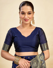 Blouse Piece: Included (Unstitched, matching navy blue with zari border)