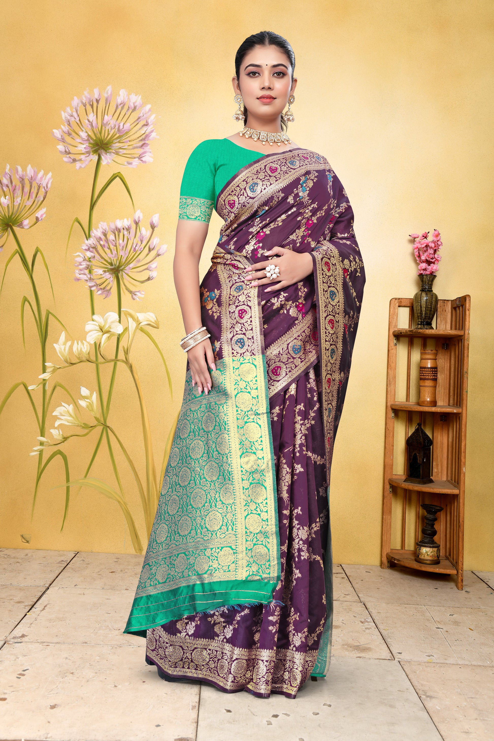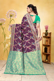 Regal Purple Banarasi Silk Saree with Green Zari Weaving