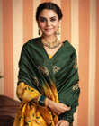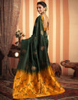 Royal Green & Mustard Silk Saree with Golden Zari Floral Weaving