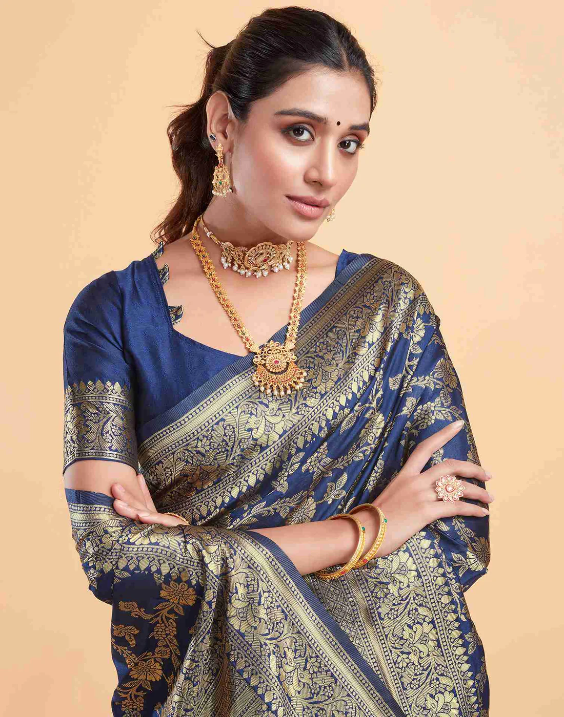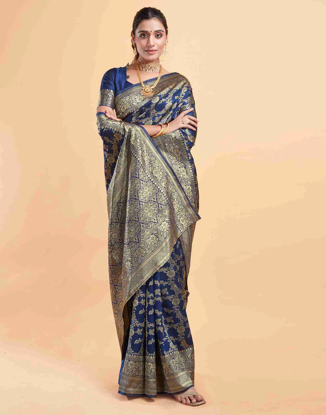 Royal Navy Blue Banarasi Silk Saree with Intricate Zari Weave