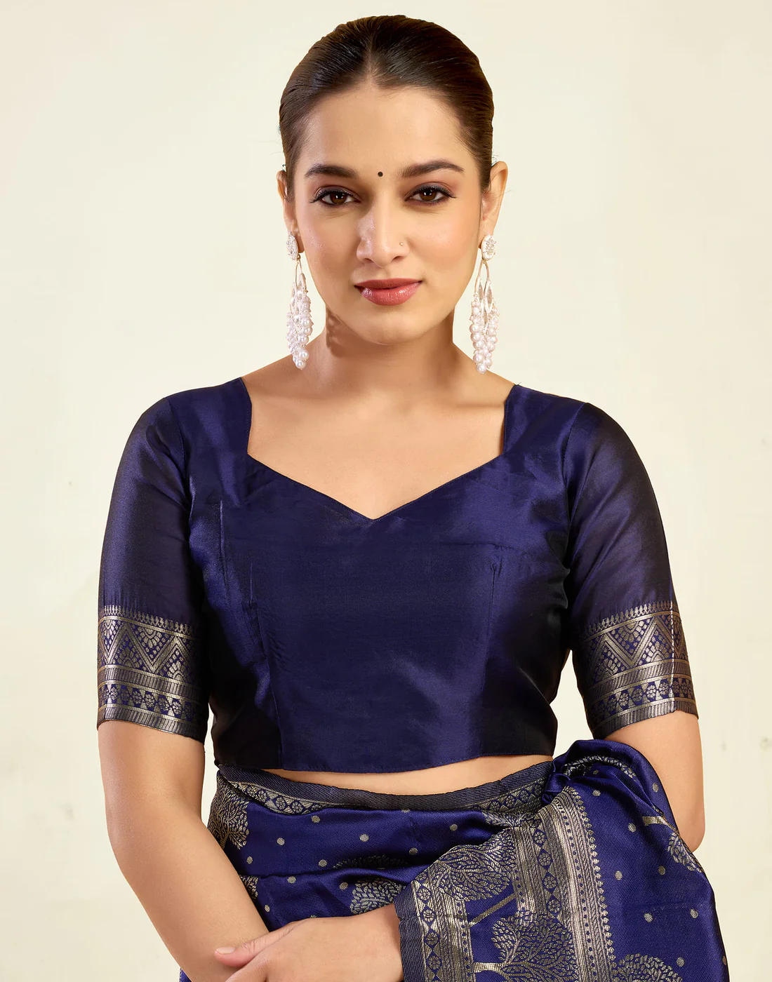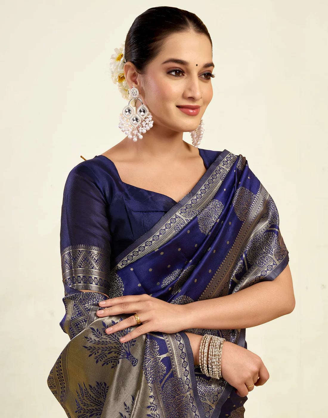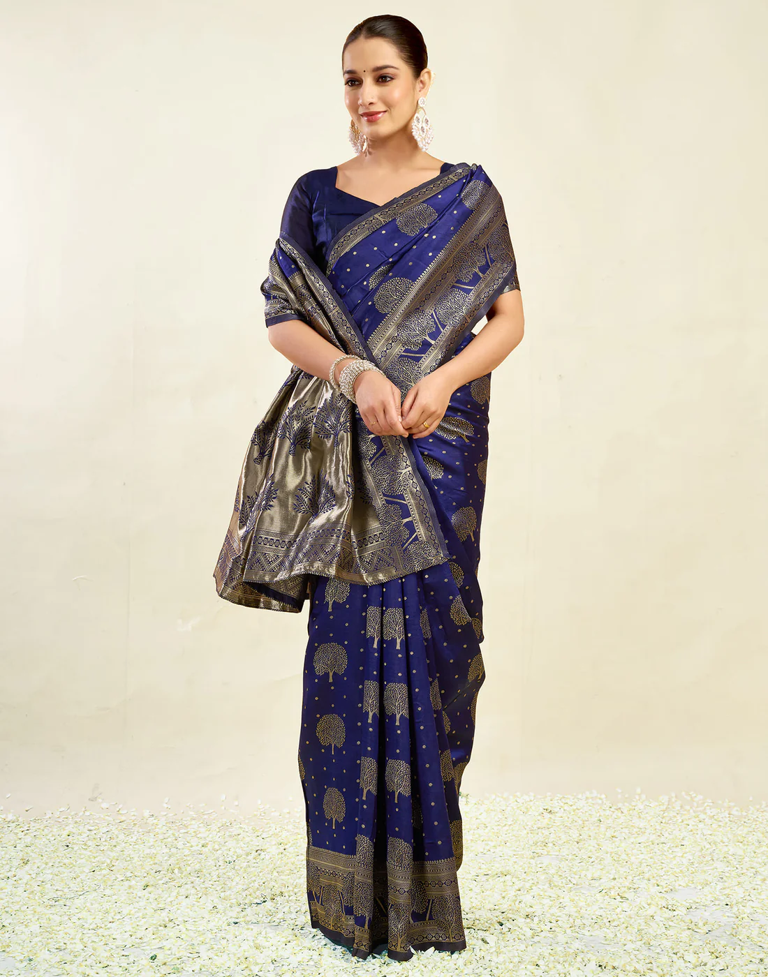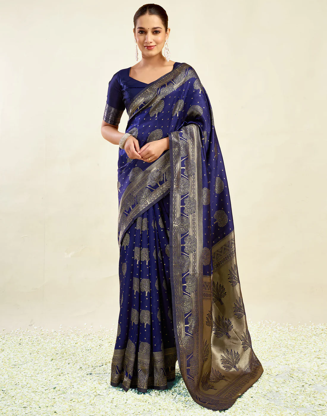 Striking Navy Blue Banarasi Silk Saree with Grand Zari Weaving