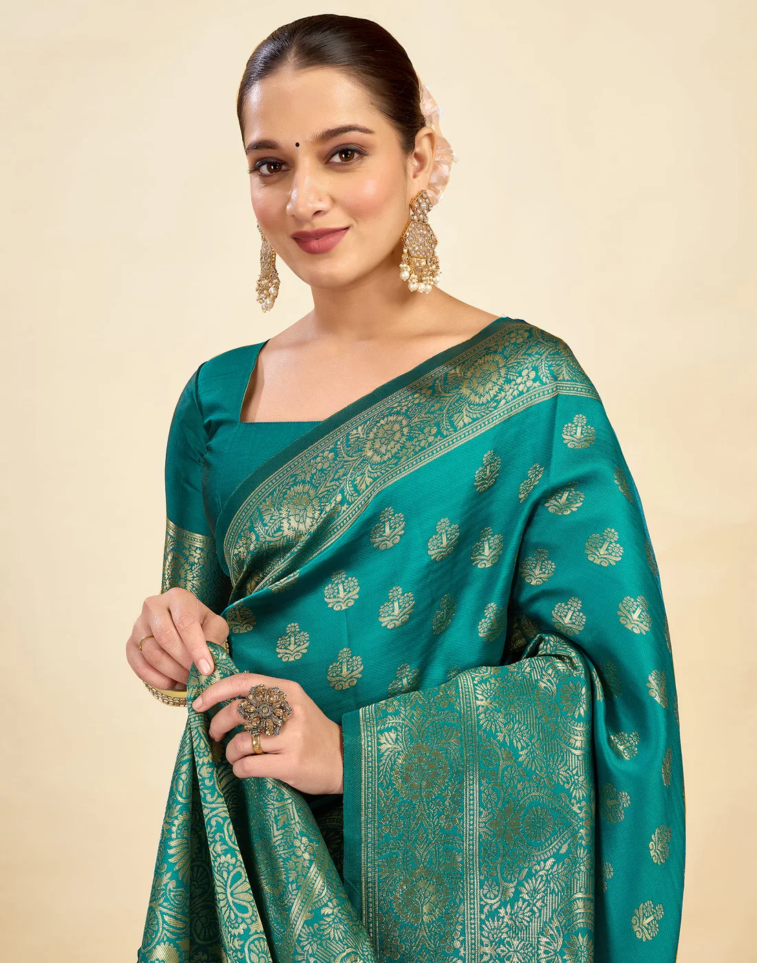 π Why Youβll Love It: The captivating rama green shade, enhanced by the opulent golden zari work, transforms this saree into a true heritage piece. It's a perfect blend of rich, unique color and traditional artistry, ensuring you make a grand and memorable statement at any occasion.