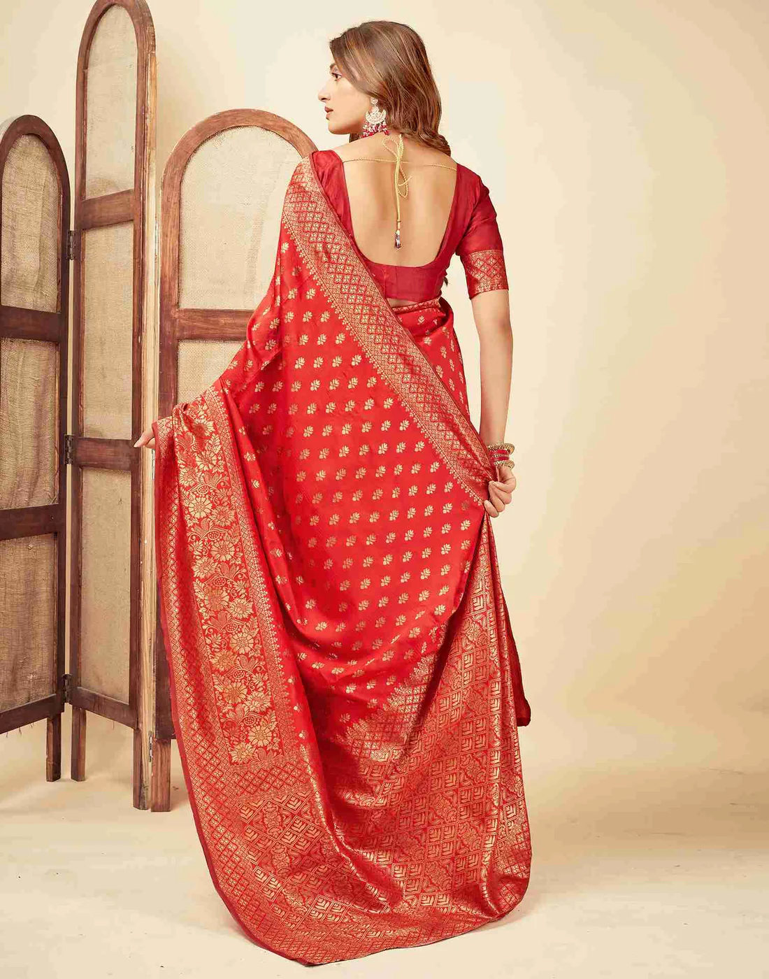 Color: Vibrant Red with Golden Zari Work