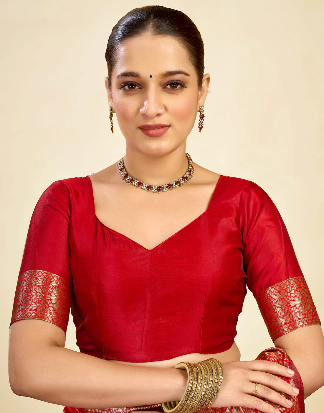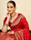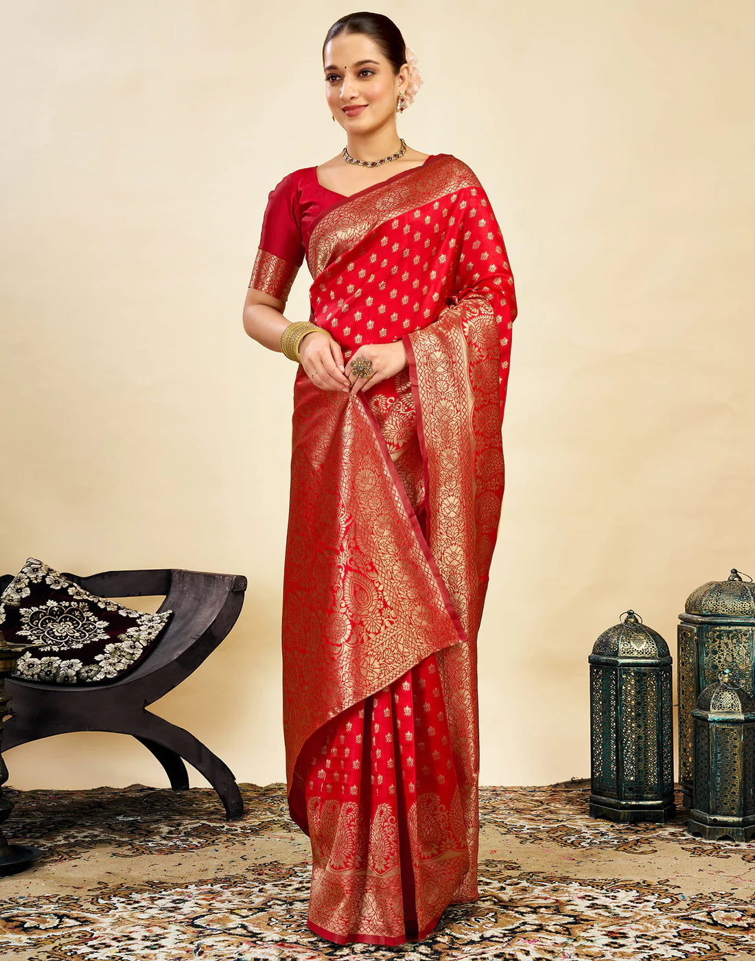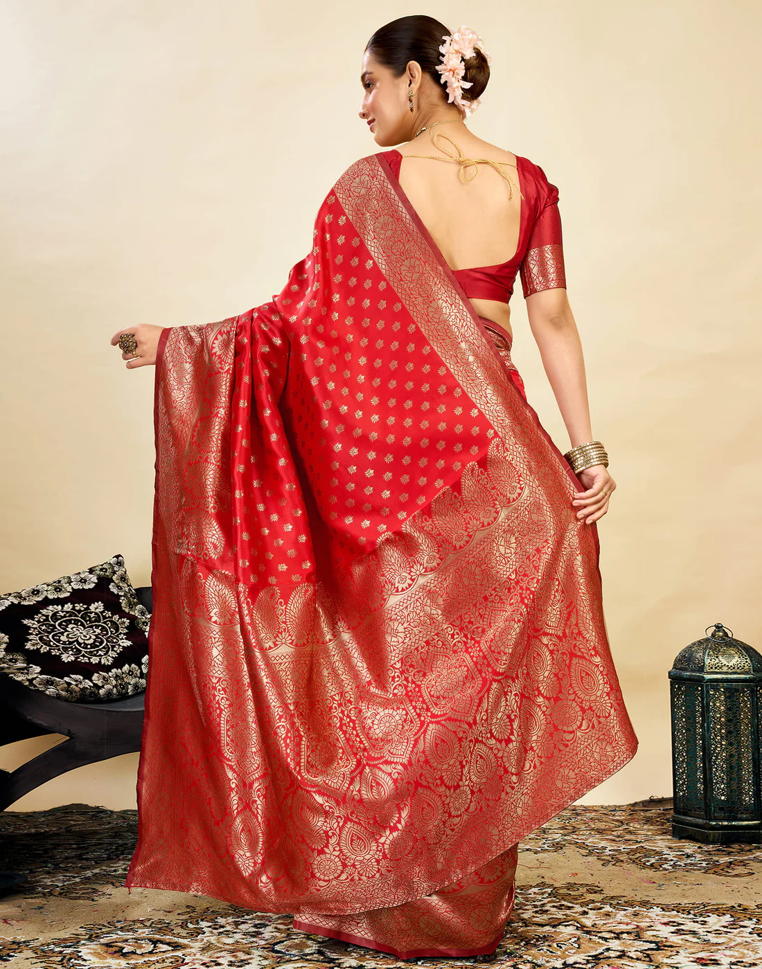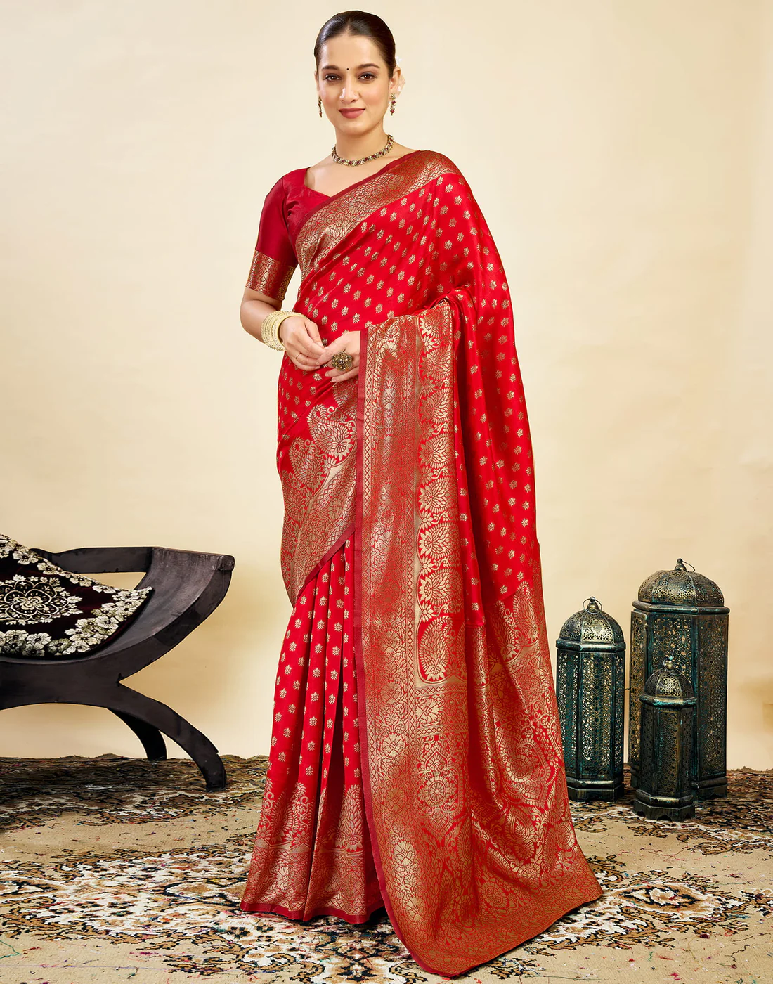 Vibrant Red Banarasi Silk Saree with Golden Zari Weaving