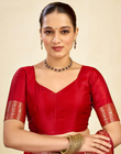 Blouse Piece: Included (Unstitched, matching red with zari border)