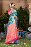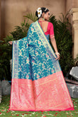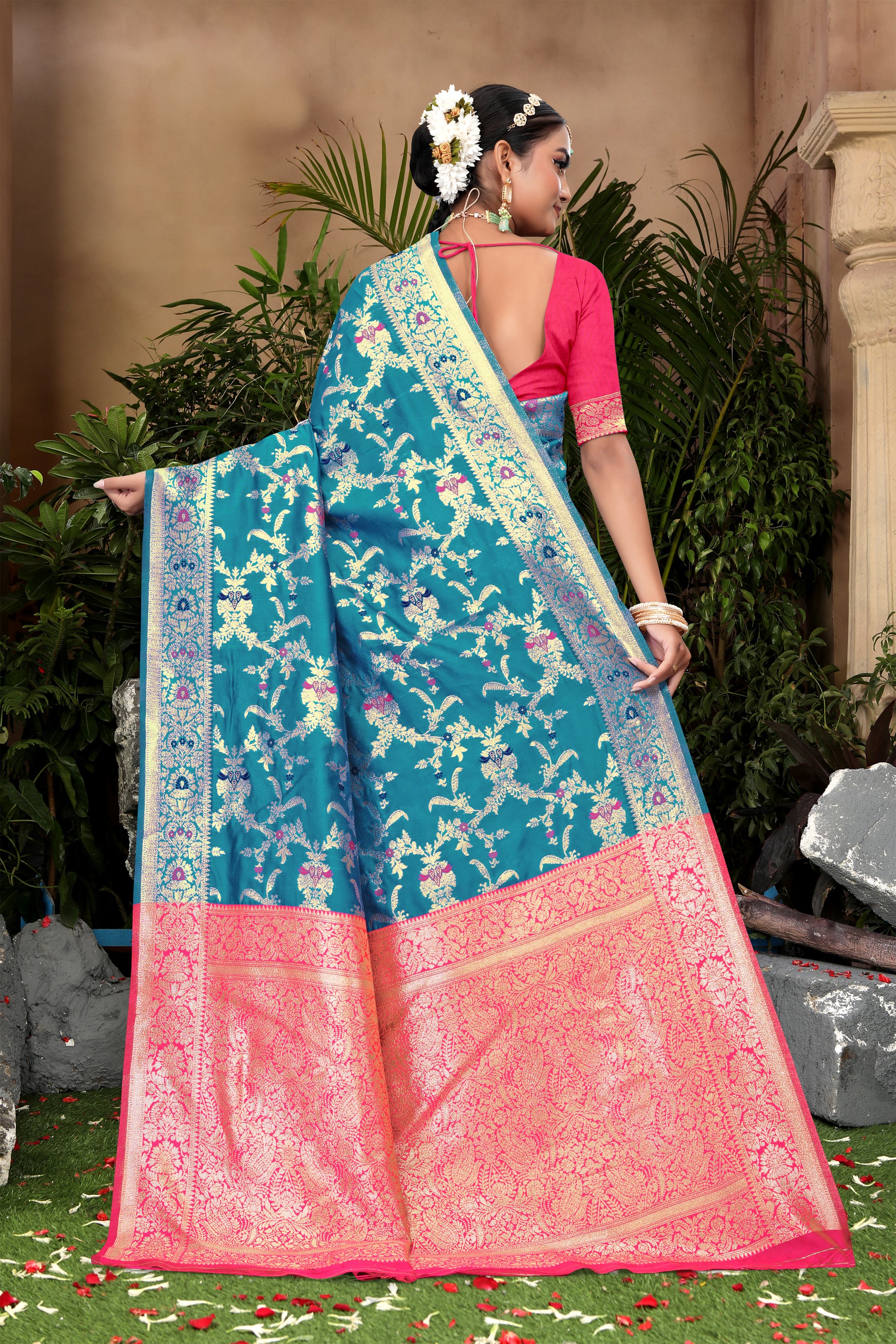Vibrant Sky Blue Banarasi Silk Saree with Golden Zari